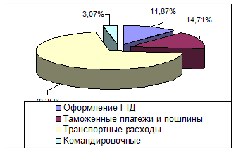 Импортные поставки позволяют предприятию закупать сырье и комплектующие для осуществления производственной деятельности. В качестве стран – партнеров предприятия по данному направлению реализации ВЭД выступают Россия, Белоруссия и Молдова. Общая сумма плановых расходов на осуществление импортных поставок в 2007 году составляет 83,81 тыс.грн. При этом в структуре данных расходов первое место занимают транспортные расходы 58.863 тыс.грн. (70,35%), на втором месте таможенные платежи и пошлины 12,326 грн. (14,71%), на третьем месте 9,952 тыс.грн. (11,87%). Сумма плановых затрат на экспортную деятельность 100580 грн., а на осуществление импортных поставок 83810 грн, то есть на экспортную деятельность в 1,2 раза затраты выше.