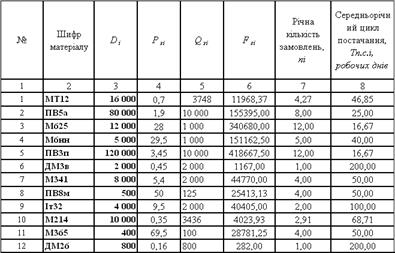 Розрахуємо оптимальне замовлення для кожного виду матеріалів. Дані наведені у табл. 1.