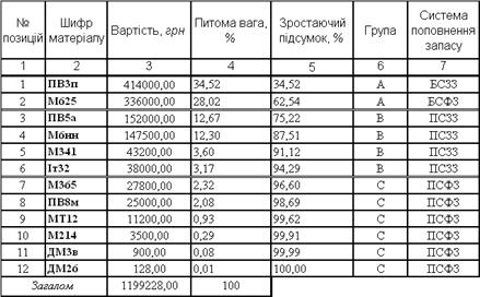 Таблиця 3- АВС-класифікація позицій матеріалів