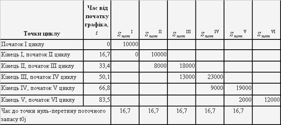 Для побудови графіка руху запасу спочатку на основі відповідних показників табл. 6 складаємо табл. 7.