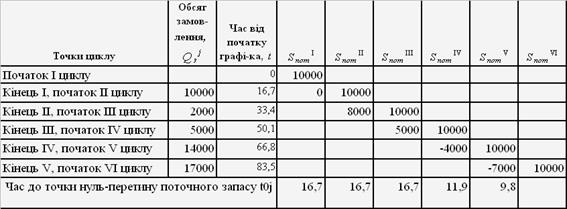 В нашому прикладі має місце два від’ємних значення рівня запасу в кінці четвертого і п’ятого циклу постачання Sj