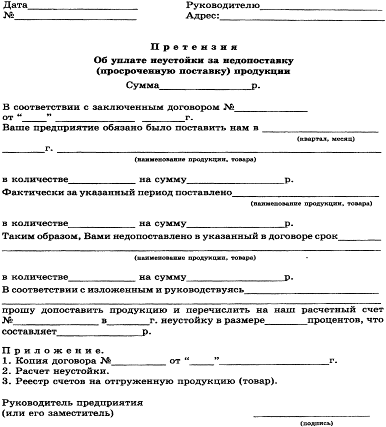 Рассчитать штрафные санкции за недопоставку чулочно-носочных изделий и составить претензионное письмо предприятию-изготовителю на основе следующих данных.