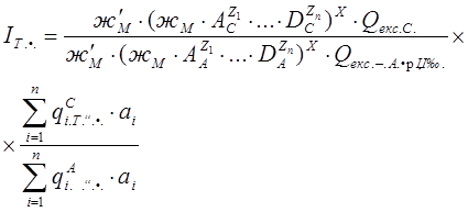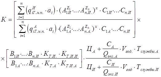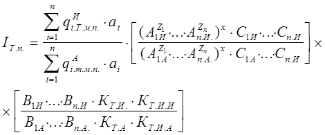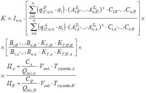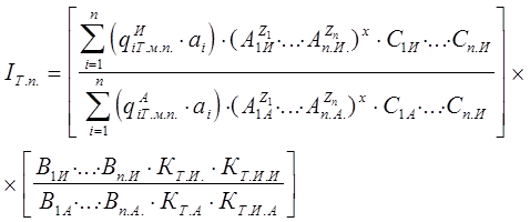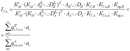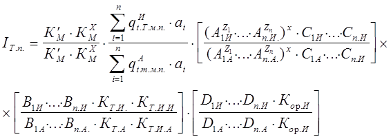 Вираз, укладений в перші квадратні дужки, групує показники призначення і являє собою індекс призначення, а в других - показники технічного рівня.