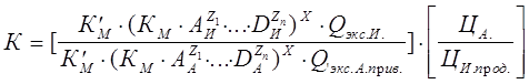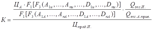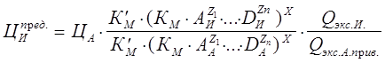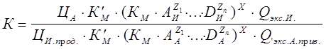 Однак, за умови, що мультиплікативна форма є найбільш строгим способом вираження функціональних залежностей будь-якого виду, у тому числі і продажній ціні від маси, а останньої від функціональних і класифікаційних показників призначення, тоді формула при підстановці в неї вираження перетвориться в наступне: