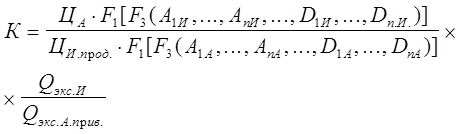 Як що в даному випадку аналізу підлягає продукція промислового призначення, що здобувається покупцем з метою одержання прибутку від подальшого її використання, то це обґрунтування є актуальним. Крім того, у число аналізованих параметрів входять усі показники призначення, що характеризують споживчі можливості, необхідні для досягнення вище поставлених цілей. Визначення значимості кожного з показників призначення також запрограмовано в рівнянні споконвічно і виражається у виді ступенів, що відображають мультиплікативну залежність.