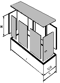 Модульна конструкція дозволяє змінювати обсяг і форму камери шляхом додавання стандартних панелей з кроком 562 та 1125 мм. Кути камер утворюються за допомогою кутових елементів зі сторонами 175 мм.