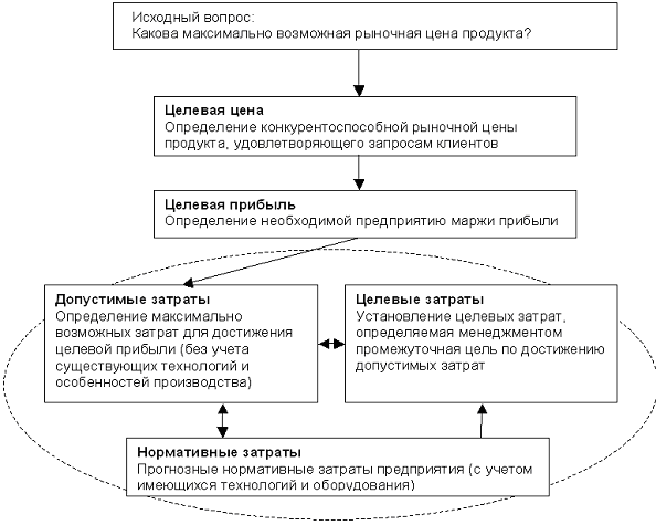 Суть таргет-костинга заключается в том, что вместо стандартного вопроса: "Во сколько обходится производство продукции?" (производственно-ориентированная система управления затратами) контроллеры (или иные ответственные специалисты финансовых (экономических) служб предприятия) должны поставить другой вопрос: "Сколько допустимо стоить продукции?" (рыночно-ориентированная система управления затратами). Система таргет-костинга всецело ориентирует предприятие на условия конкурентной борьбы за рынок и покупателей. При этом выполняется ее основная задача: определение такой себестоимости продукции, которая при цене, жестко заданной рынком, позволит предприятию получить прибыль. При этом разрабатываемые продукты должны соответствовать требованиям потребителей по всем качественным характеристикам.