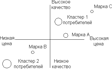 Рис. 1. Типичный пример позиционирования товара с учетом кластеров потребителей