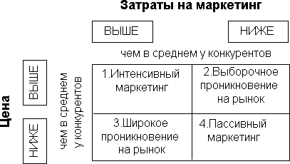 Учет затрат на маркетинг и цен на продукцию при позиционировании иллюстрируется рис. 2.