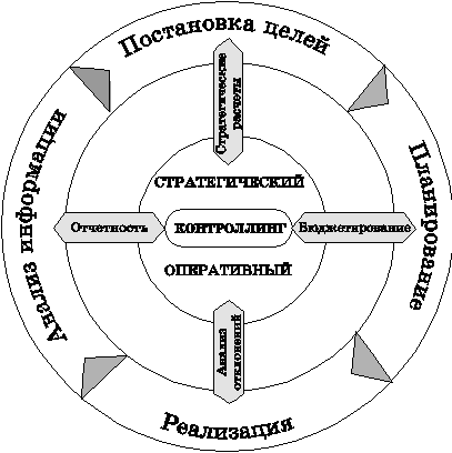 В наиболее общем виде специфическая цель деятельности службы контроллинга должна заключаться в обеспечении эффективности системы управления компанией посредством информационно-аналитической и методологической поддержки руководителей всех уровней предприятия в процессе принятия ими управленческих решений, направленной на гарантированность достижения основных (прежде всего монетарных) целей предприятия. Причем поддержка эта осуществляется с помощью специальных финансовых инструментов: методов учета, анализа и расчета затрат, планирования и бюджетирования, контроля за системой, выявления и анализа отклонений факта от плана и т.д.