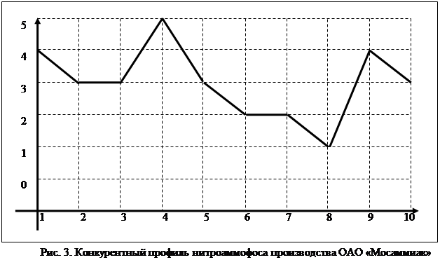 При устранении данных недостатков (хотя бы до уровня 4-х баллов согласно нашей матрице) конкурентоспособность товара возрастет до уровня: К0 = (4+3+3+5+3+4+4+4+4+3)/10 = 3,70, что означает высокую конкурентоспособность нитроаммофоса, а, следовательно, увеличение прибыльности его производства.