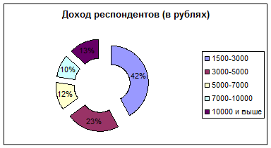 2. Молодые люди в возрасте от 25-ти до 34-х лет с доходами ниже 3000 рублей при покупке костюмов отдают предпочтение магазину-салону швейного объединения «АДОНИС» (10% опрошенных); рыночным комплексам (более 60% опрошенных), при этом рынки выбираются в зависимости от их близости к месту жительства, работы. Молодые люди этой же возрастной группы, но имеющие более высокие доходы, предпочитают магазины: ЦУМ — 3% опрошенных, ГУМ — 5%, XL— 7%.