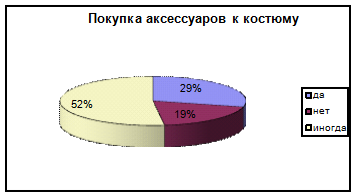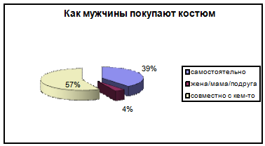 В процессе исследования также выяснился немаловажный факт, что мужчины готовы вместе с костюмом покупать такие вещи, как галстук, платок, запонки и различные аксессуары к костюму.