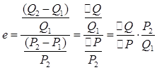 цены на один процент на участке кривой спроса от точки 1 ( ) до точки 2 ( ) или в предельном случае – в любой точке кривой спроса.