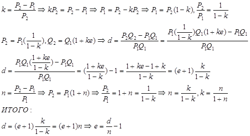 величину прироста цены относительно уровня 2 от уровня 1, то величину прироста выручки d