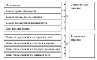 1. Сегментация (или макросегментация) – процесс выделения товарных групп и групп потребителей, для которых эти товары предназначены (например, сегмент «Парфюмерия для женщин», сегмент «Средства гигиены для мужчин» и т.д.).