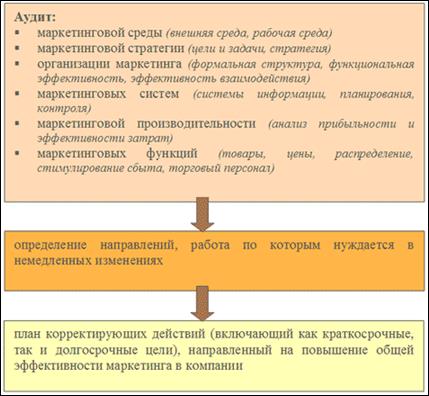 Аудит маркетинга представляет собой всеобъемлющую, систематическую, независимую и периодическую проверку внешней среды маркетинга, целей, стратегий и отдельных видов маркетинговой деятельности для организации в целом или для ее отдельных хозяйственных единиц (рисунок 2).