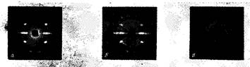 При этом следует отметить, что частично все три рефлекса сохранились па экваторе, а частично образовали дебаевские кольца, что соответствует наличию в системе некоторой доли кристаллов с С-текстурой, с одной стороны, и изотропного материала - с другой.