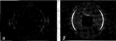 Рис.4. Фоторентгенограммы композиции K2, отожженной при 428 К в течение 600 с: о - прямая съемка, б -
