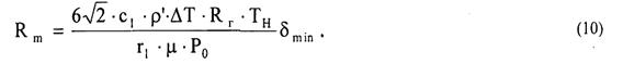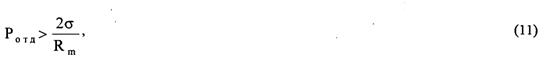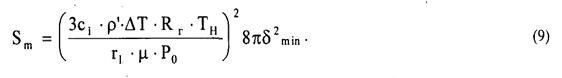 Для DT=10К, например, Rm» 4,2-10-6 м. При достижении тепловым пограничным слоем в жидкости толщины dmjn в круге радиусом Rm давление отдачи пара компенсируется только искривлением поверхности, т.к. давление внутри пузыря мало отличается от внешнего, силой инерции жидкости также можно пренебречь. Поэтому для того, чтобы давление РОТд смогло продавить стенку первичного пузыря в области Sm и образовать выпуклость в стенке, из которой образуется вторичный пузырек вблизи стенки первичного пузыря, необходимо, очевидно, выполнение условия