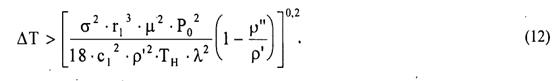 Подставляя (3), (7) в (8),получим величину перегрева жидкости, при котором уже возможно образование вторичных пузырьков