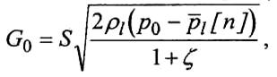 где [п] - текущее давление в последней зоне трубы (i=n), а коэффициент потери напора при внезапном сужении потока x = 0,5. В режиме нестационарного истечения массовый расход жидкости на выходе из канала всегда превышает g0 и только в режиме стационарного истечения оба параметра принимают одинаковое значение.