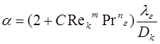 Для газовых потоков, несущих испаряющиеся капли, при определении коэффициента теплоотдачи широко используется зависимость