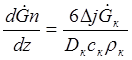 где m,кг/см2 - поток массы пара от испаряющей поверхности жидкости; DW - приращение нормальной скорости пара.