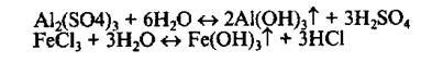 При осветлении воды уже давно широко применяют коагулянты на основе металлов (квасцы и соли железа). Эти вещества действуют и как коагулянты, и как флокулянты. При добавлении в воду, которая при осветлении обычно имеет величину рН " 6-7, они образуют положительно заряженные частицы. В ходе такой реакции гидролиза образуются нерастворимый гелеобразный гидроксид алюминия или трехвалентного железа.