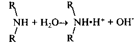 К катионным полиэлектролитам относятся полиамины или четвертичные амины. Ниже показана реакция гидролиза полиамина в воде: