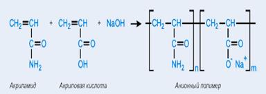 Полиакриламид (ПАА) получил наиболее широкое распространение. ПАА получают обработкой акрилонитрила 85% раствором серной кислоты с последующей полимеризацией акриламида. Выпускаемый ПАА имеет молекулярную массу (1-6)*106