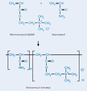 Эти флокулянты получаются путем сополимеризации мономеров акриламида и метилхлорида ADAM триметиламмонийэтилакрилат хлорид).