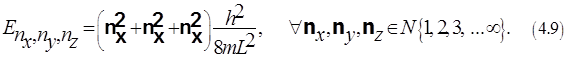 En= n2 (h2/8mL2) "nÎN(1,2,3,…¥) (1.7).