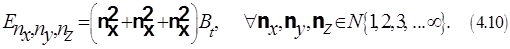В кубическом ящике все рёбра одинаковы, и его энергетическая постоянная равна Bt=h2/8mL2, и уровни выражаются через неё в виде