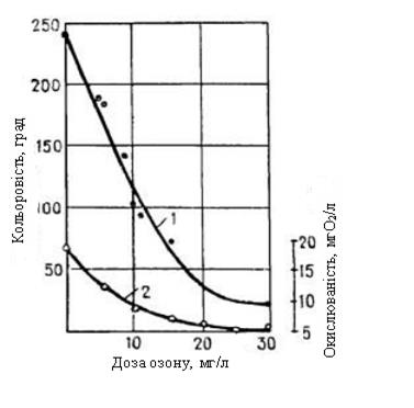 =1,24 В) і за нормальної температури руйнує багато органічних сполук. Під час озонування одночасно відбувається окиснення домішок, знебарвлення, дезодорація, знезараження стічної води та насичення її киснем.