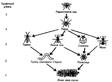 Рис. 10. Трофічні зв'язки в простих харчових ланцюгах