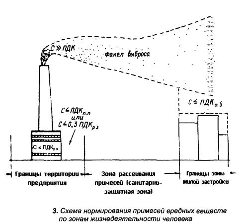 В приземном слое атмосферы населенных пунктов установлены ПДК ВВ, значения которых приведены в «Санитарных нормах проектирования промышленных предприятий СН 3917–85».