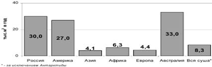 Дальнейшее увеличение численности населения будет сопровождаться обострением продовольственных проблем, а нехватку воды к 2025 г. будут испытывать 2/3 населения мира. Уже сегодня дефицит воды испытывают такие экономически развитые страны, как США и Германия. Критическим считается использование более 10% годовых запасов пресной воды. В настоящее время не многие страны могут похвастаться подобным показателем. По данным Глобального центра окружающей среды при Агентстве международного развития США, к 2050 г. останутся лишь 3 или 4 страны, которые не будут испытывать острого кризиса из-за нехватки воды. Определенно в их числе будет Россия. Однако следует учитывать тот факт, что запасы пресной воды по территории России распределены крайне неравномерно и не соответствуют размещению населения и экономическому потенциалу. Около 90% речного стока приходится на бассейны северного Ледовитого и Тихого океанов. На бассейны Каспийского и Азовского морей, где сосредоточен основной промышленный и, главное, сельскохозяйственный потенциал России и проживает свыше 80% населении, приходится менее 8% общего годового речного стока.