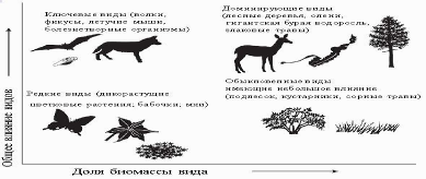 Защита ключевых видов – приоритетная задача для природоохранных мероприятий, поскольку вслед за их исчезновением на охраняемой территории могут исчезнуть и многие другие виды (Пример ключевых видов на рис.2).
