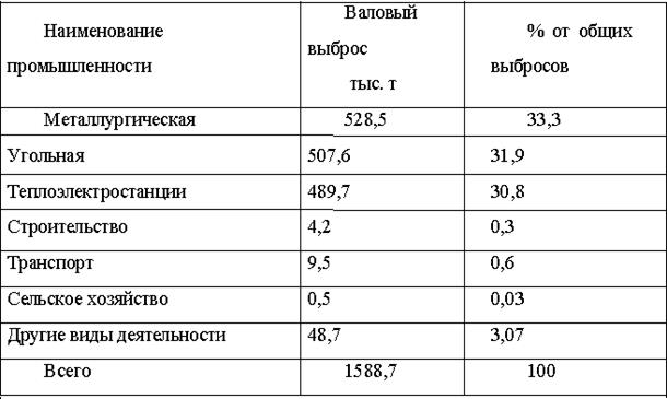 Угольные шахты, металлургические комбинаты, коксохимические заводы, машиностроительные предприятия, теплоэлектростанции является основными загрязнителями атмосферного воздуха [2,31].