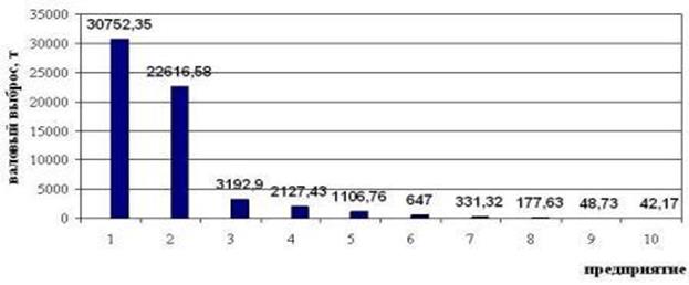 Рисунок 2 – Валовые выбросы диоксида азота по предприятиям [8]