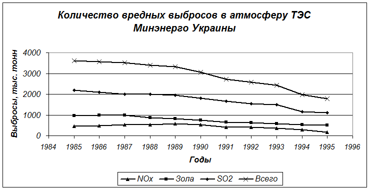 Качество окружающего нас воздуха влияет на здоровье людей, развитие животных и растений, на состояние зданий и сооружений. Основными загрязнителями атмосферы при работе тепловых электростанций являются образующиеся при сжигании топлив оксида азота, серы и летучая зола. Эти вещества рассеиваются в атмосфере и претерпевают в ней химические превращения. Их негативное действие носит локальный, иногда региональный характер. Выбросы золы, NOx