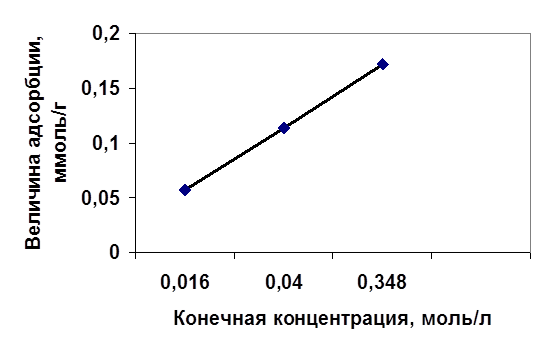 3. Рассчитаны величины удельной адсорбции хромат - ионов на анионите. Изотермы адсорбции имеют восходящий характер.