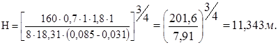 Уточнення значення Н призводиться поки два послідовно знайдених значення Н будуть відрізнятися менш ніж на 1 м