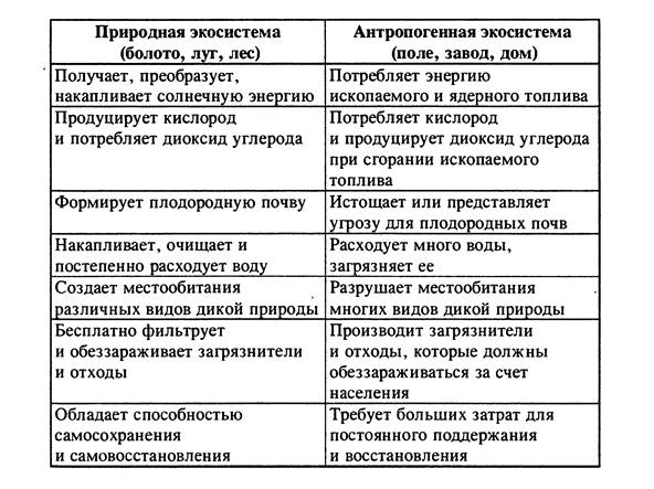 2 Антропогенные и природные экосистемы. Сходство и различие этих систем