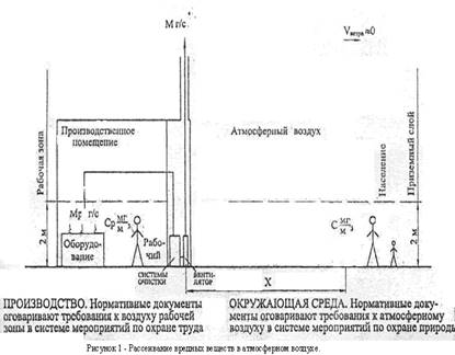 . Годовой выброс П т/год зависит от годового фонда времени работы оборудования. Попадая в окружающую среду, вредные вещества рассеиваются в атмосферном воздухе (рис. 1).
