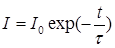 где I — интенсивность свечения в момент времени t; I0