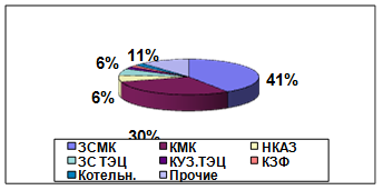 Наибольший вклад в совокупный валовый выброс вносят следующие предприятия города: ОАО “ЗСМК” - 40,7%; ОАО “КМК” - 29,8%; ОАО “НКАЗ” - 6,0%; ОАО “Западно-Сибирская ТЭЦ” - 5,9%; ОАО “Кузнецкая ТЭЦ” - 2,2%; ОАО “Кузнецкие ферросплавы” - 1,6%. Совокупно эти предприятия выбрасывают 86,2% загрязняющих веществ. Котельные города вносят 2,4% в общий валовый выброс. Несмотря на сравнительно небольшой процент валовых выбросов от котельных, они оказывают негативное влияние на атмосферу города, особенно в зимний период. Это объясняется размещением котельных непосредственно в жилых районах города, отсутствием на мелких котельных золоулавливающих устройств, низкой эффективностью очистки отходящих газов на котельных средней мощности и низкой высотой выбросов.