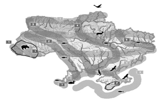 В Украине общее количество охраняемых территорий увеличилось на 31 % в 1996-2000 гг. Первый морской заповедник в регионе был создан рядом с островом Змеиный. Площадь заповедников в Украине составляет приблизительно 4.0 % от территории страны. С 1992 площадь заповедников увеличилась, почти в два раза главным образом благодаря учреждению биосферных заповедников и национальных природных и региональных ландшафтных парков. Как важную деятельность в этом направлении можно отметить существующую в Украине специальную программу для создания экологических коридоров в Азово-Черноморском регионе - дополнительно поддержанную в рамках проекта ГЭФ. В рамках выполнения обязательств по Бернской Конвенции была выполнена работа по подготовке предложений по включению Украинских охраняемых территорий в Экологическую Сеть «Эмеральд». В 2002 было подписано Соглашение о Трастовом фонде ГЭФ по проекту, посвященному биологическому разнообразию в Азовском и Черном морях и сохранению экологического коридора. (Рис. 6)