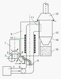 - блок утилизации и регенерации сорбента, включающий центрифугу, валки для отжима и печь для сжигания.